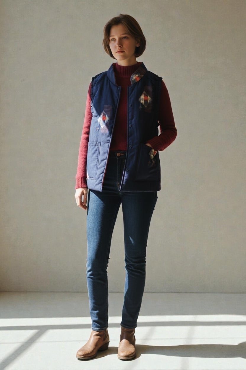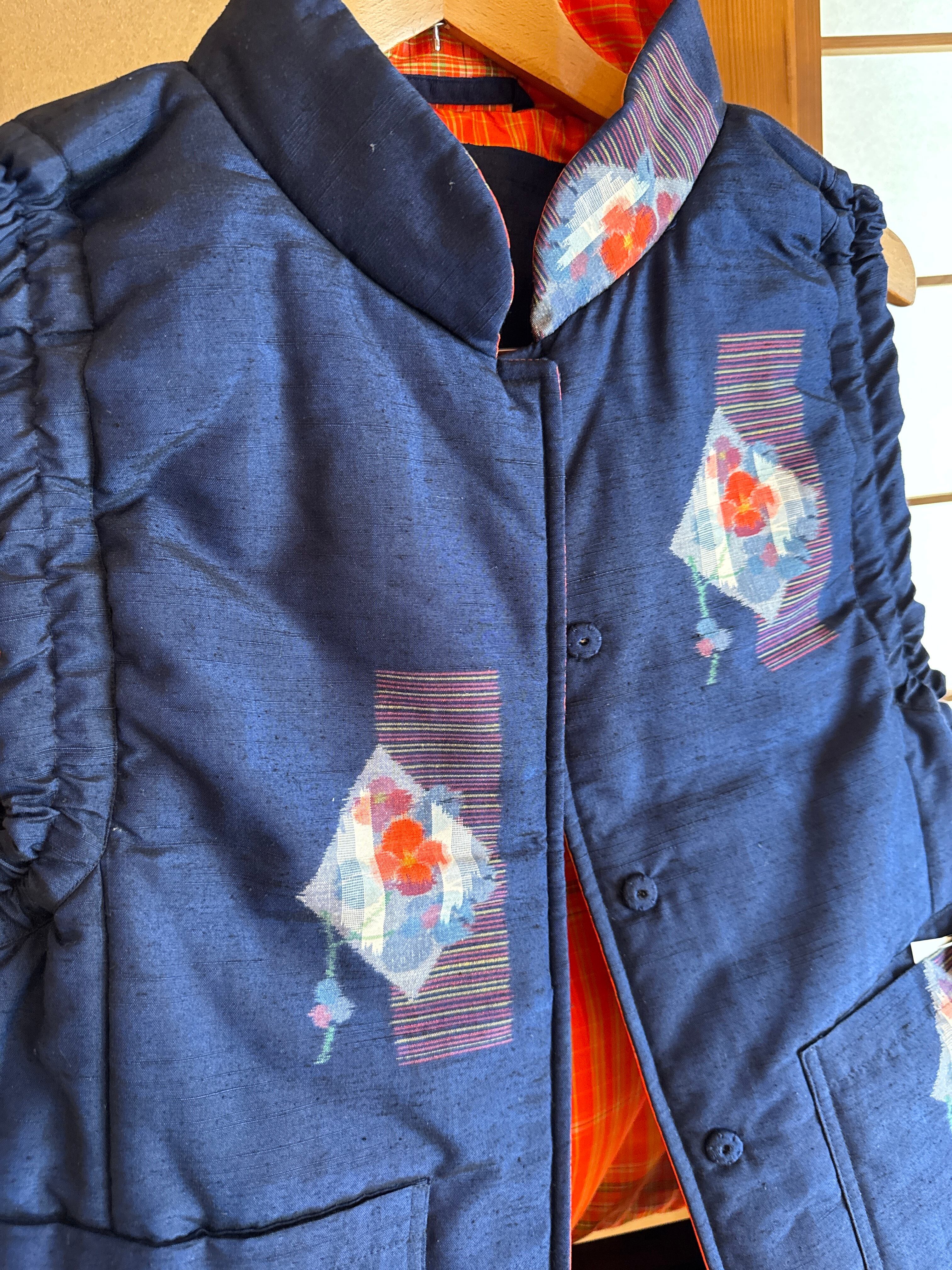 MIYOKO 正絹 十日町紬×大島紬 ベスト リバーシブル